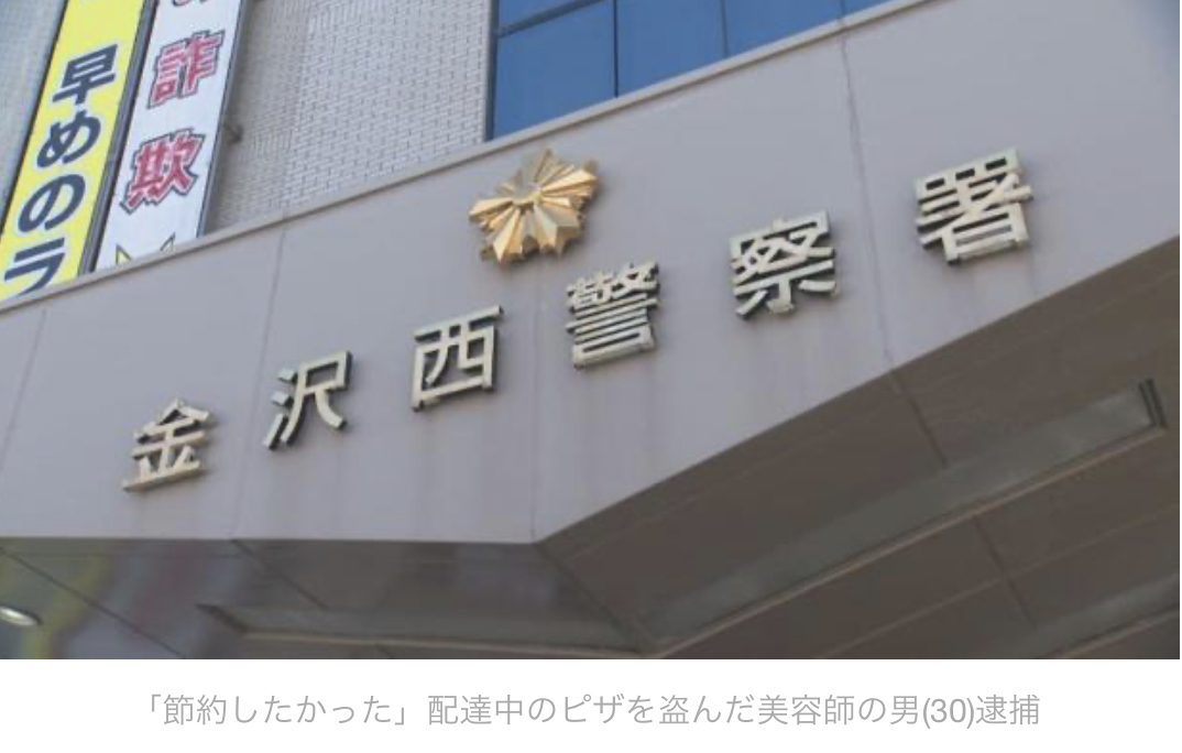 配達中のバイクに入っていたピザ2枚を盗んだとして、金沢市の美容師の男が逮捕されました。