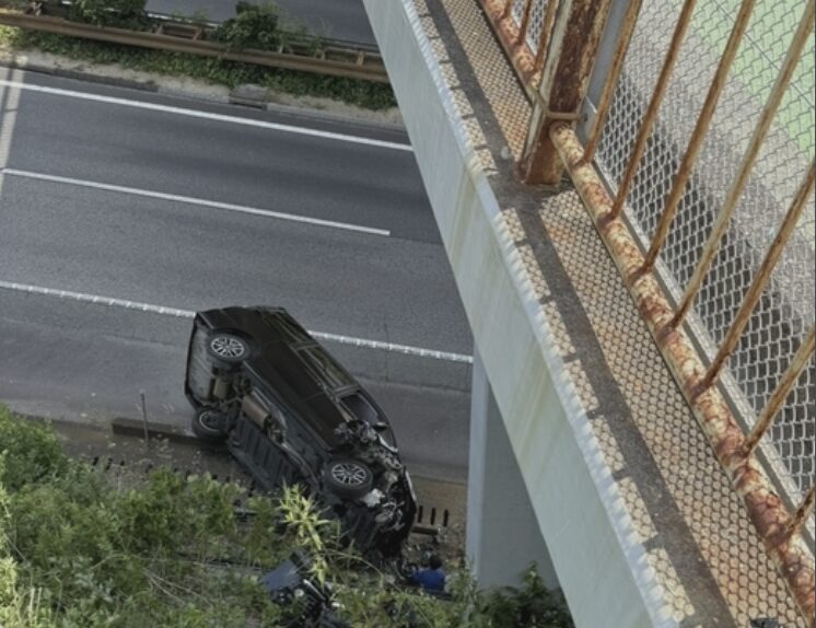 https://news.yahoo.co.jp/articles/25abc8b302619dcb6e5b76dc846592612dd931e86月1日午後1時半頃、浜松市中央区初生町で車が東名高速をまたぐ橋の脇から東名・上り線の路側帯へと転落する事故がありました。