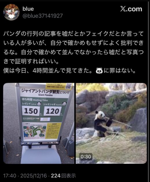 パンダが居なくなってもネトウヨが毎日並んで大行列にしてくれるらしいよ