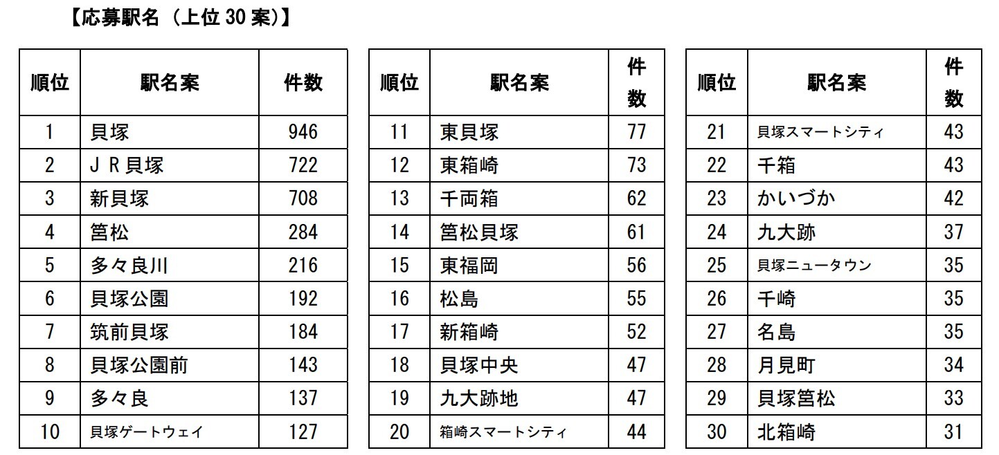 なお、駅名に採用された「JR貝塚」は、投票数では2位。1位は「貝塚」でした。このほか、