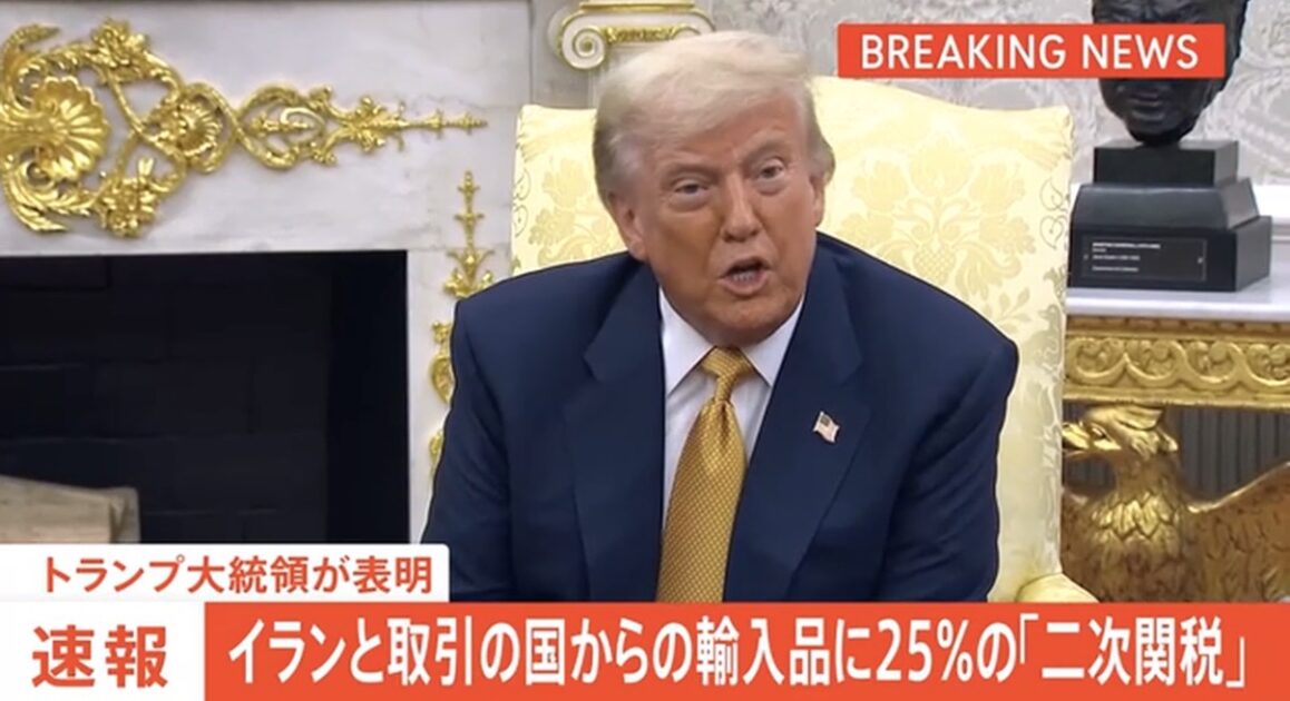 イランと取引をしている国からの輸入品に対し、アメリカが25%の「二次関税」を課す意向を表明したもので、トランプ氏はこの関税措置は「最終決定」だとしたうえで「即時、発効する」としています。