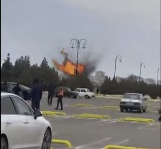 アゼルバイジャン政府筋は、この事件で火災が発生したと明らかにした。同筋が提供した映像には、空港付近で黒煙が上がる様子と、ターミナルビル内部の天窓が損傷している様子が映っていた。