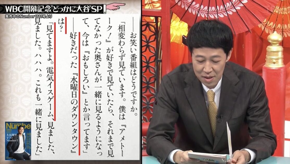 この日は「WBC開幕記念“どっかに大谷”SP」。過去に放送された41の野球系の「説」を再調査、大谷翔平が出演している回を探す企画が展開された。