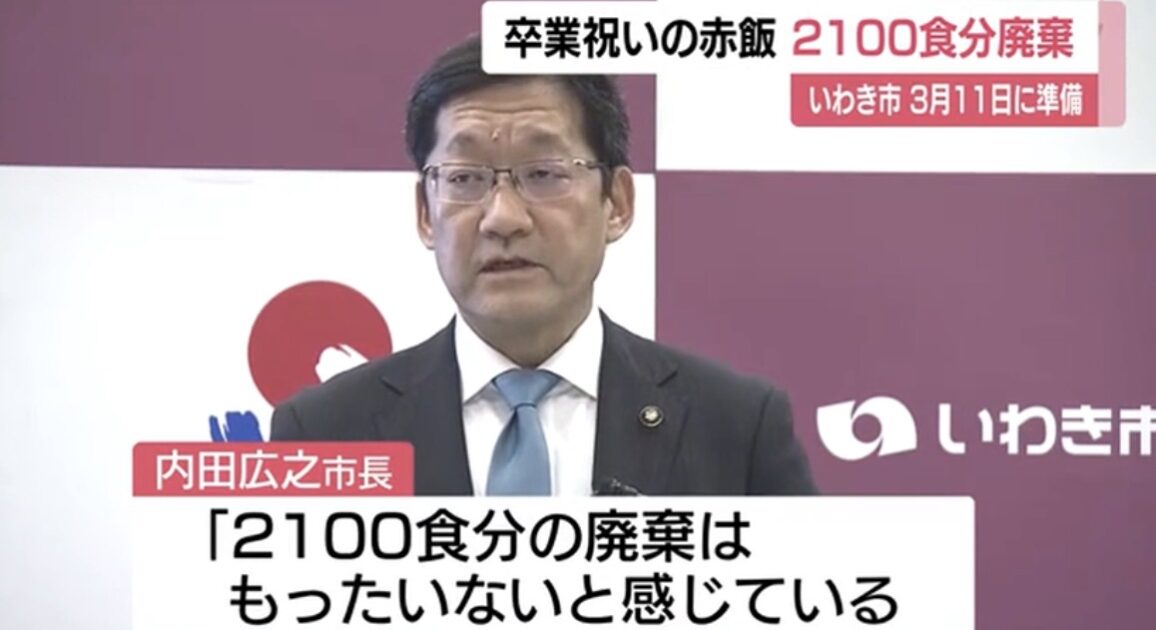 いわき市によると、東日本大震災の発生から15年の節目を迎えた3月11日に、いわき市内の5校の中学校では卒業祝いとして給食に赤飯が用意されていた。