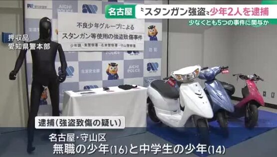 メ~テレ(名古屋テレビ)名古屋市東区で4月5日に発生したスタンガンを使った強盗致傷事件で、16歳と14歳の少年2人が逮捕されました。