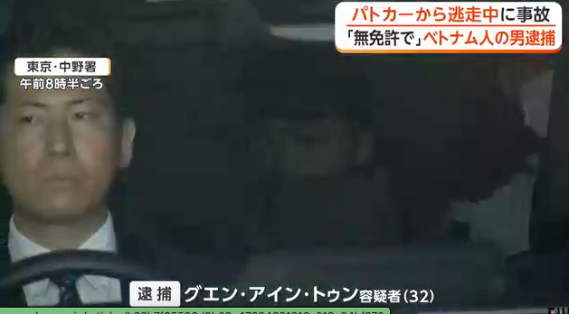 引用元: ・【警視庁】パトカーから逃走中に追突事故、そのまま逃げたグエン容疑者を逮捕 「ビザ切れ、無免許なので逃げた」と供述 [シャチ★]