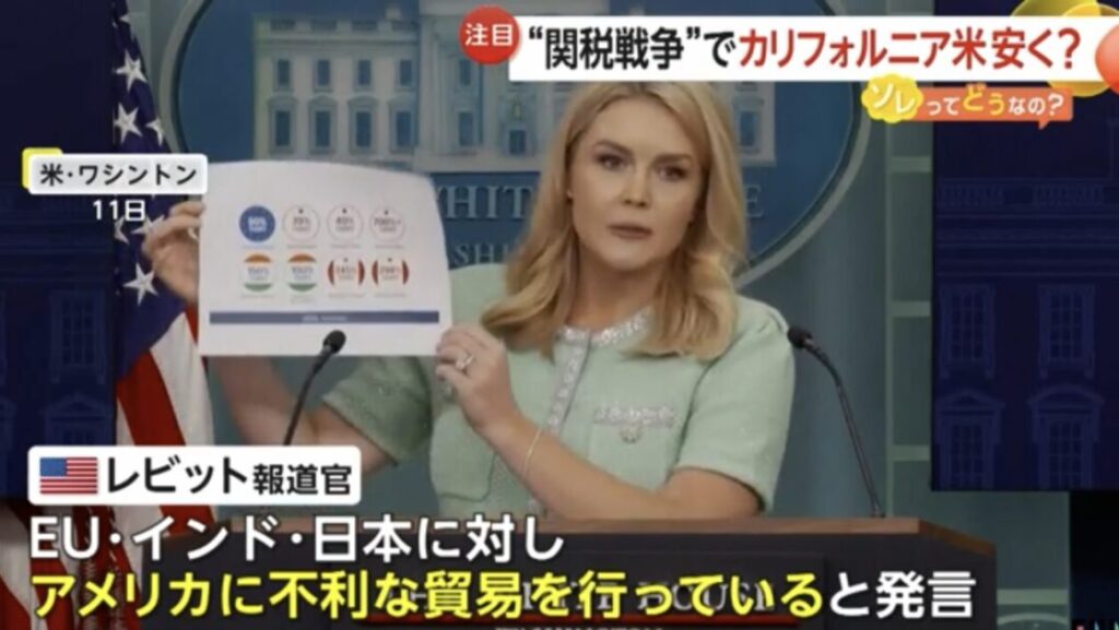 1: シャチ ★ 2025/03/15(土) 19:14:12.47 ID:zAH8Uedv9 アメリカ・ホワイトハウスの報道官が、会見で日本の食卓に関わる注目の発言をしました。狙われたのは日本が輸入米にかけている関税です。 12日の“ソレってどうなの?”は、「“関税戦争”でカリフォルニ... -