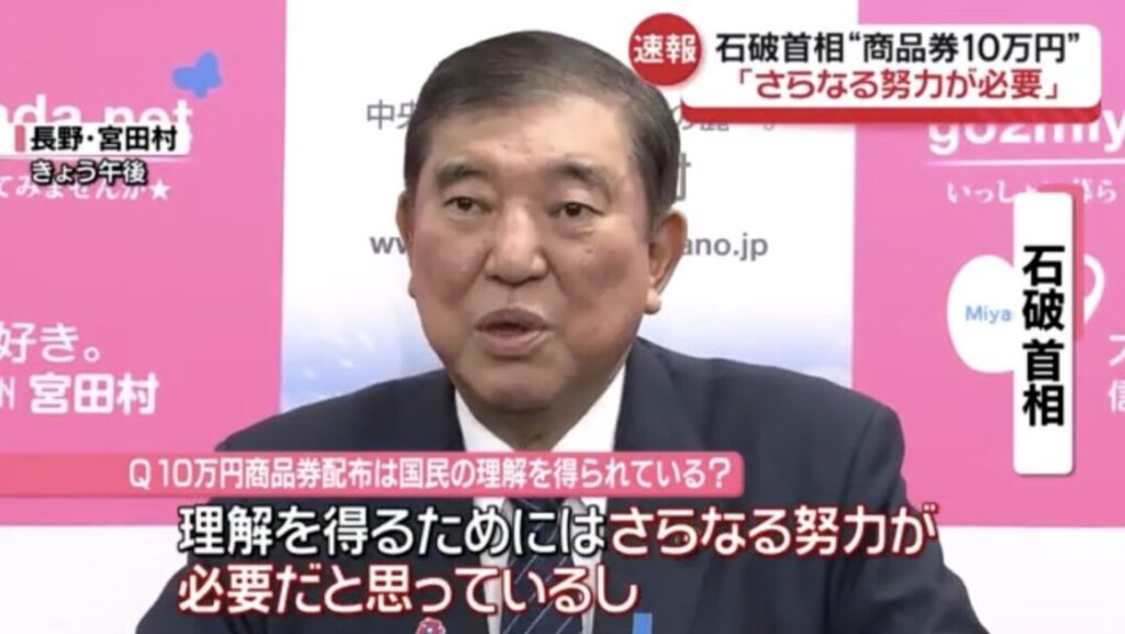 石破首相「国民の理解を得られたとは思っていない」 商品券配布