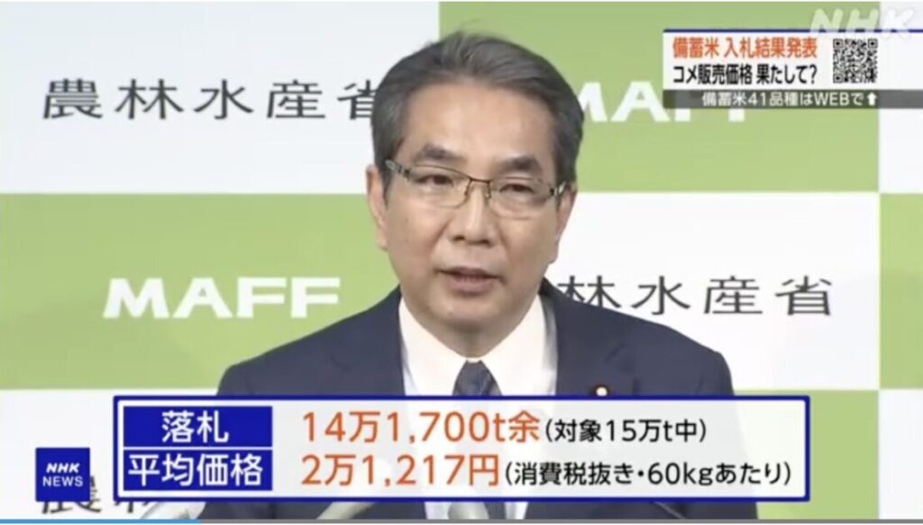 1: 牛乳トースト ★ 2025/03/14(金) 17:39:50.24 ID:5lxz8gOa9 今月10日から行われた備蓄米の入札について、江藤農林水産大臣は、対象となった15万トンのうち、14万1000トンあまりが落札され、落札価格の平均は、60キロあたり2万1217円だったと発表しました... -