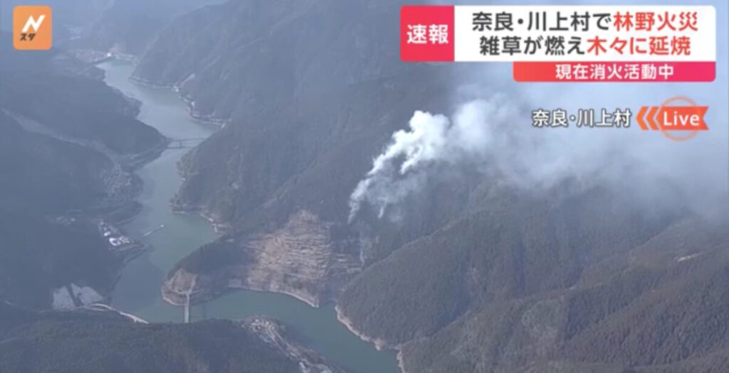 【奈良】「刈った雑草を燃やしていたら付近に燃え移ってしまった」奈良県川上村で山火事 現在も延焼中