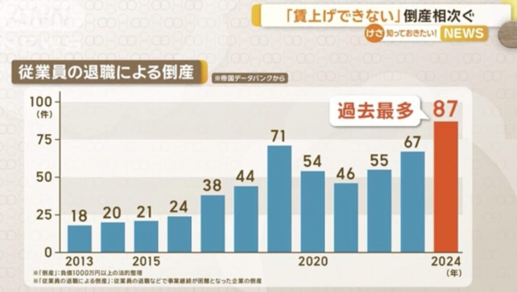 【人手不足】従業員の退職による倒産が過去最多 賃上げできずにつなぎとめられず
