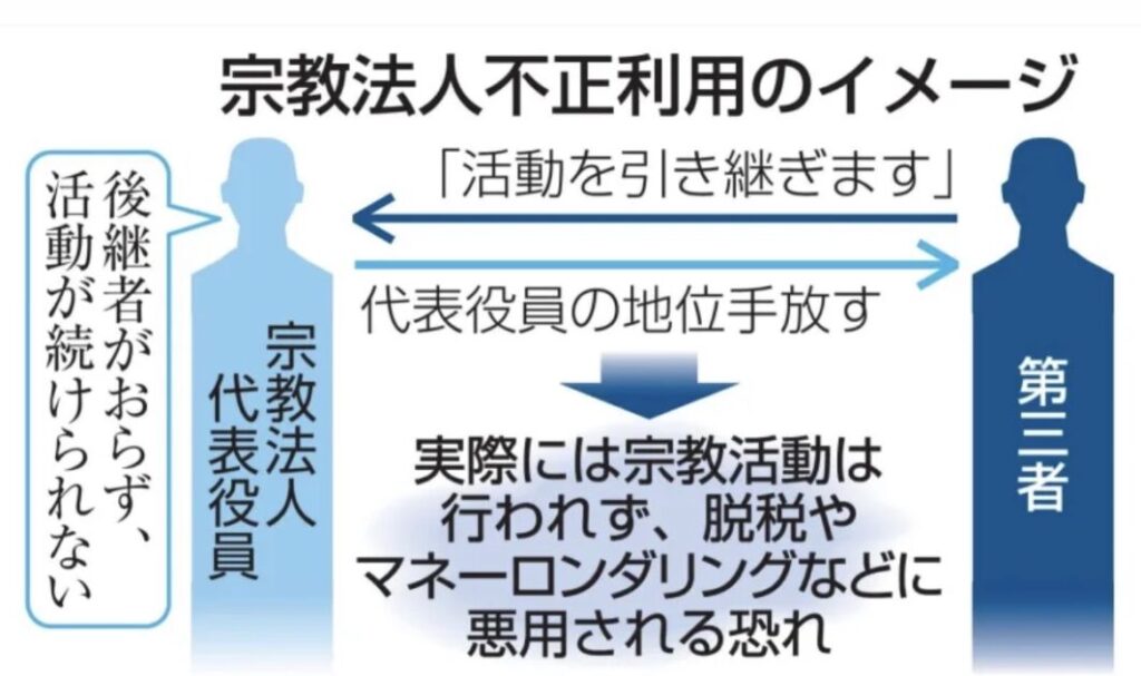 1: 少考さん ★ 2026/03/01(日) 08:25:21.24 ID:BtIPqI4e9 文化庁、宗教法人の不正調査へ 活動実態ない脱税・マネロン | NEWSjp -共同通信 Published 2026/02/28 16:53:57 Updated 2026/03/01 01:02:05 活動実態のない宗教法人を第三者が取得し、脱税や... -