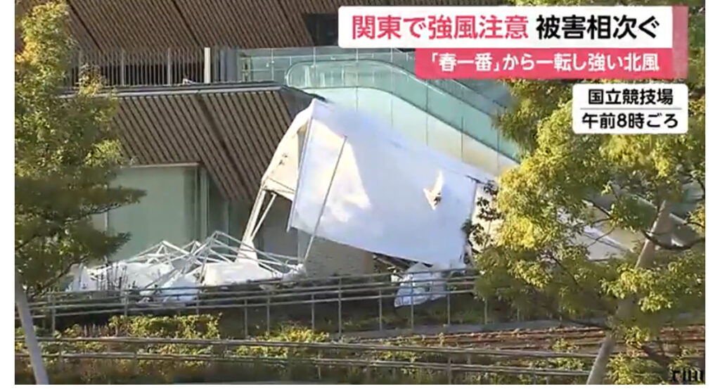 きのう春一番 関東で強風被害…飛行機は風にあおられ イベント用テントもひっくり返る きょうは北風、電車も見合わせ・遅延