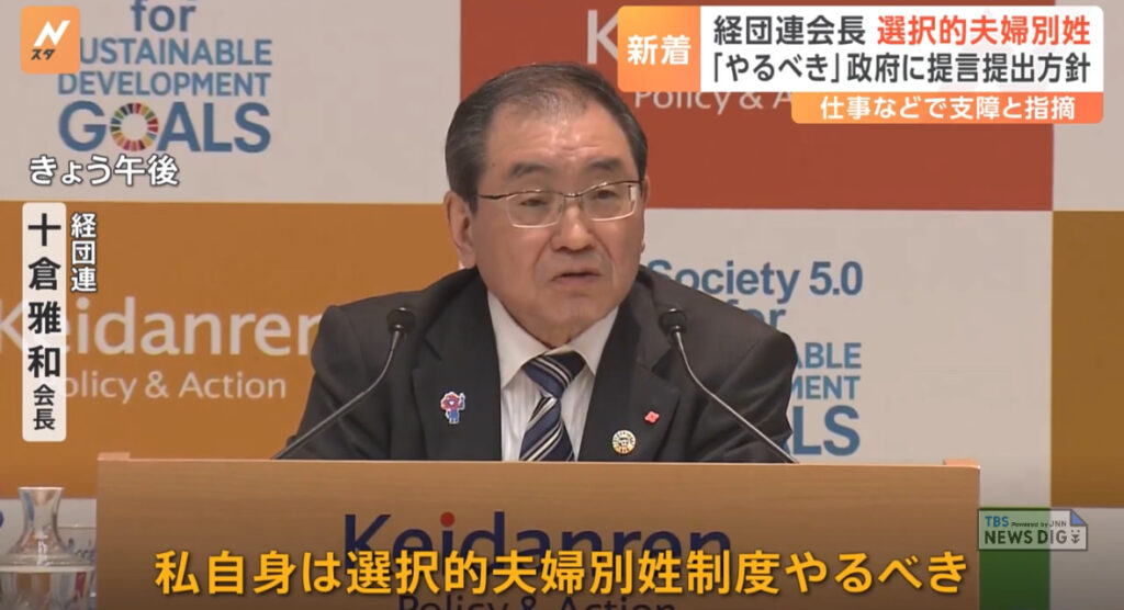 【選択的夫婦別姓制度】経団連・十倉会長「やるべき」「なぜこんなに長い間、棚ざらしになっているのか」