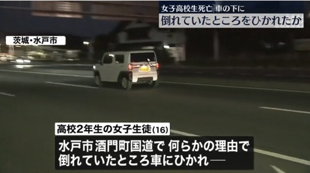 【社会】女子高生、車に9キロ引きずられて死亡。元から道路に倒れていた模様…茨城