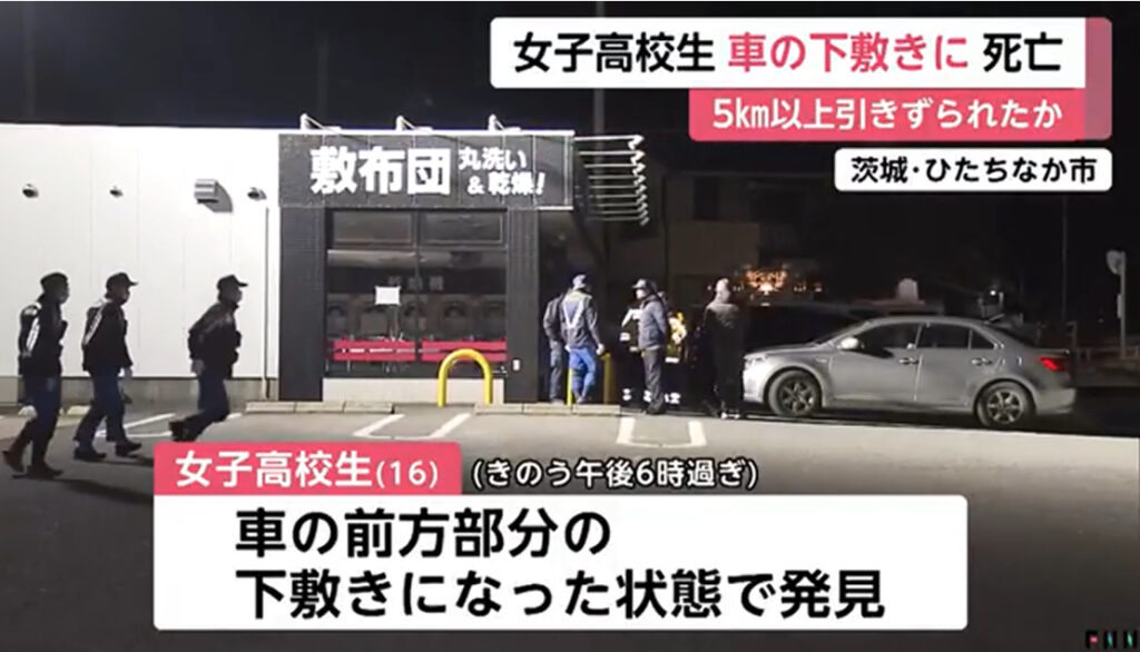 車の下敷きに 16歳女子高生が死亡 体中に傷や出血…5km以上引きずられたか 茨城
