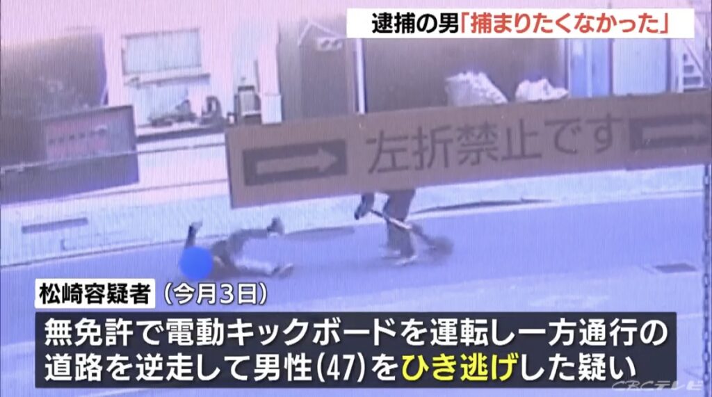 【名古屋】「捕まりたくなかった」との趣旨の供述 電動キックボードでのひき逃げ容疑で逮捕の男(44)時速20キロ程でぶつかったか