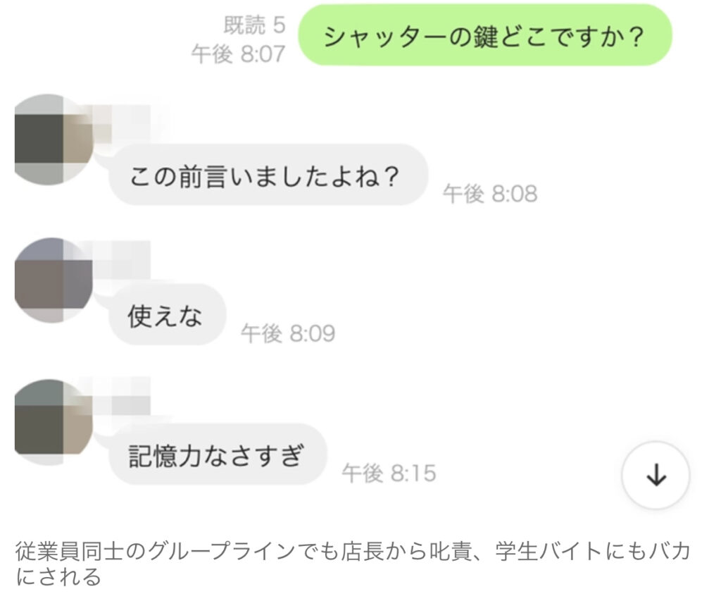 【中年バ畜】「使えな」「記憶力なさすぎ」店長と学生バイトにグループLINEでいじめられる50歳バイトの悲鳴