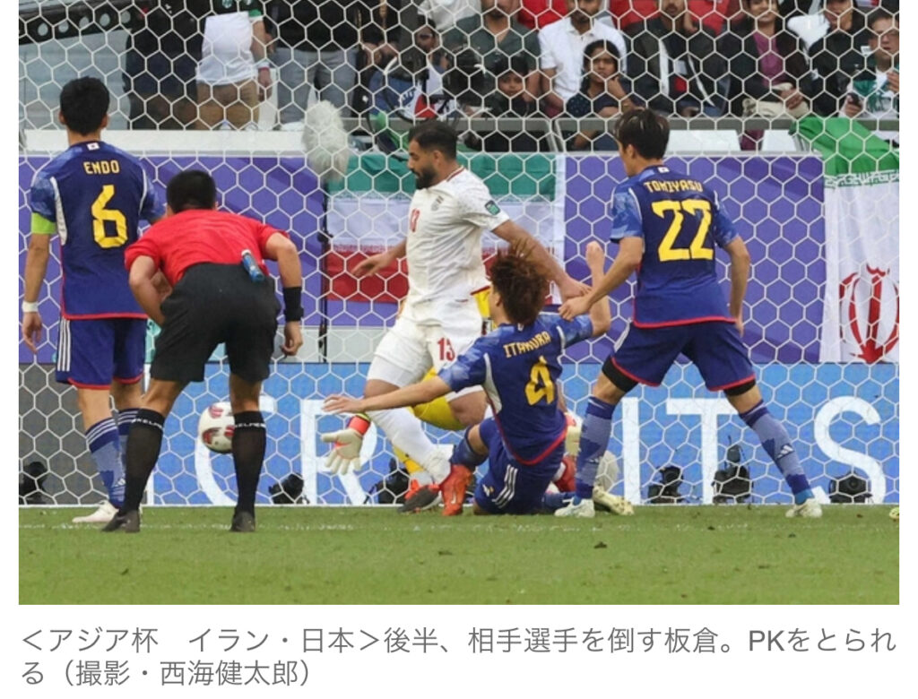 【サッカー】日本のPK献上直前、見逃されていたイランの“反則” 元日本代表が指摘 「ファウルスローですけど…」