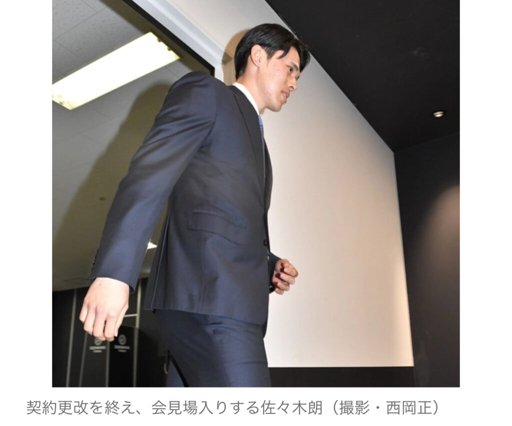 1: ギャラガー ★ 2024/01/27(土) 12:28:37.94 ID:??? TID:gallagher ロッテの佐々木朗希投手(22)について27日、千葉市内で松本尚樹球団本部長が経緯を説明した。佐々木朗は12球団で唯一、契約未更改が続いていたが、26日に球団が合意に達したと... -