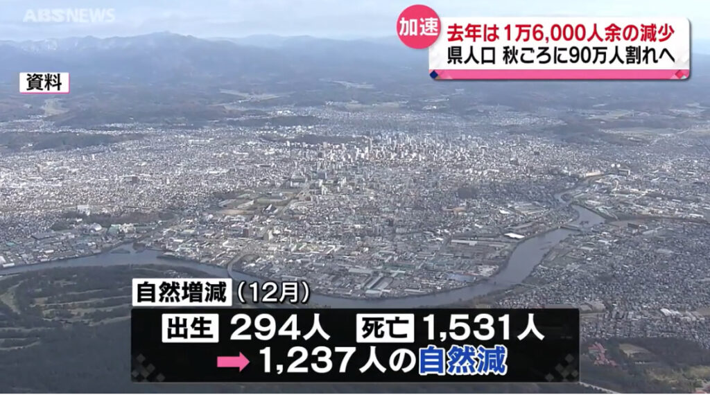 【秋田】県人口91万人を割り込む 少子高齢化がより顕著に 減少のペースが加速 今年秋ごろには90万人を割り込む見通し