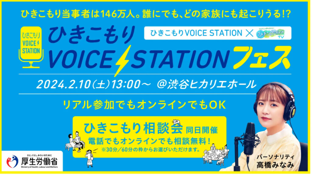 1: おっさん友の会 ★ 2024/01/23(火) 14:26:17.80 ID:8a69jt+O9 パルシステム連合会が企画参加する「ひきこもりVOICE STATIONフェス」(主催:厚生労働省)が2月10日(土)13時から、渋谷区の渋谷ヒカリエホールで開催されます。 ひきこもり経験者や支援者... -