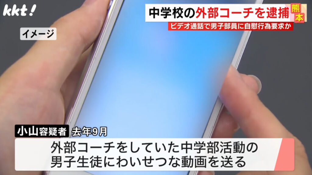 【熊本】男子中学生にわいせつな動画を送るなどした疑い 部活動の外部コーチ男を逮捕