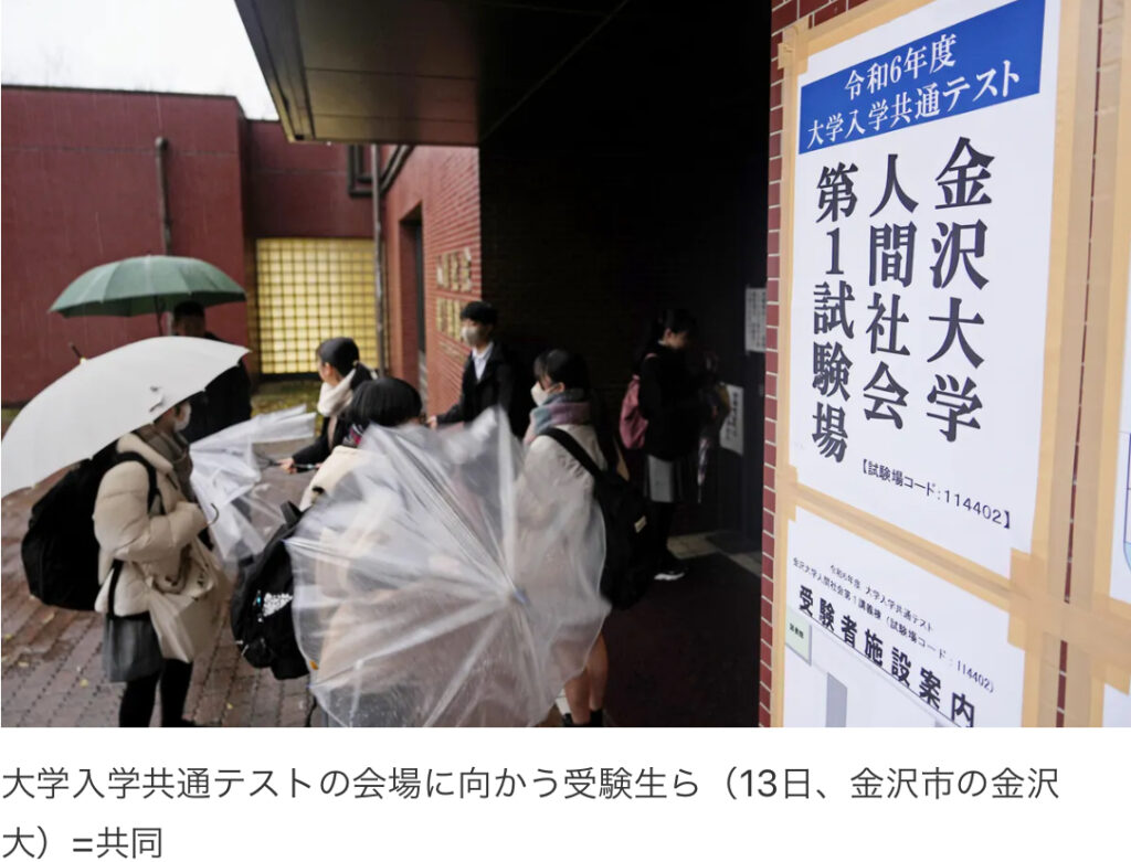 大学入学共通テスト1日目、石川で受験率減 地震影響か