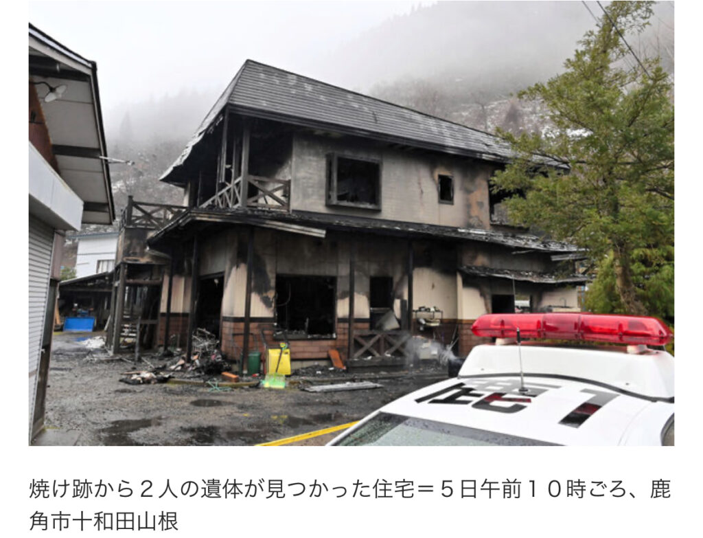 1: うんこ(大阪府) [US] 2023/12/05(火) 14:42:43.50 ID:PtK8Sltu0● BE:323057825-PLT(13000) sssp://img.5ch.net/ico/999991500948658.gif 5日午前4時半ごろ、鹿角市十和田山根、自営業の男性(53)方が燃えていると、近隣住民が119番した。 木造... -