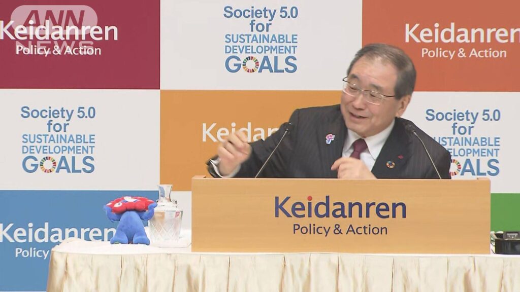 【東京】記者会見中に万博キャラ「ミャクミャク」突然倒れる!経団連会長が動揺