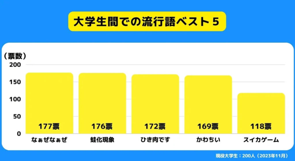 大学生のリアルな流行語TOP3は「なぁぜなぁぜ」「蛙化現象」「ひき肉です」RECCOO調べ