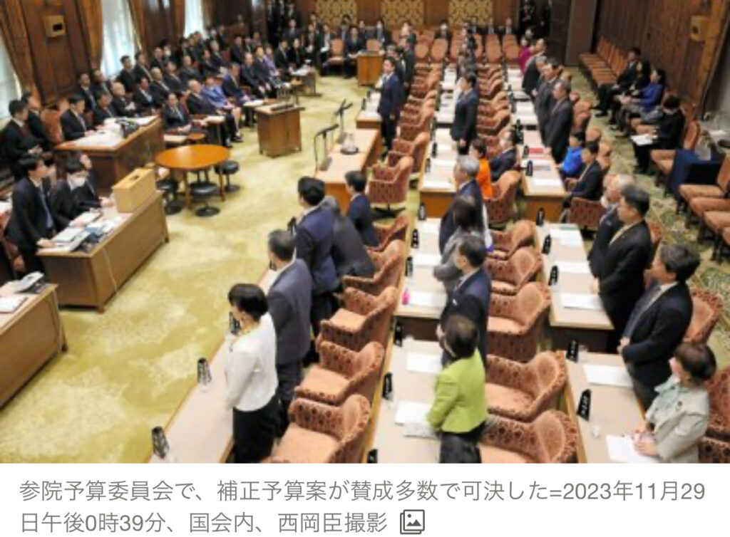 1: 蚤の市 ★ 2023/11/29(水) 22:10:38.74 ID:9qxXF4v/9 物価高対策などを盛り込んだ今年度補正予算が29日の参院本会議で、自民、公明、日本維新の会、国民民主の4党などの賛成で可決、成立した。立憲民主、共産、れいわ新選組の3党などは反対した。一般... -