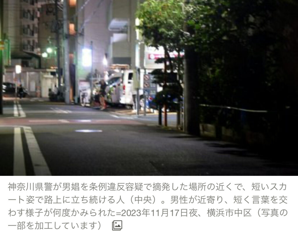 1: 蚤の市 ★ 2023/11/29(水) 22:14:23.21 ID:9qxXF4v/9 横浜最大の歓楽街・伊勢佐木町(横浜市中区)に隣接する若葉町と周辺で、外国人男娼(だんしょう)の神奈川県迷惑行為防止条例違反容疑の検挙が相次いでいる問題で、県警の直江利克本部長は29日の... -