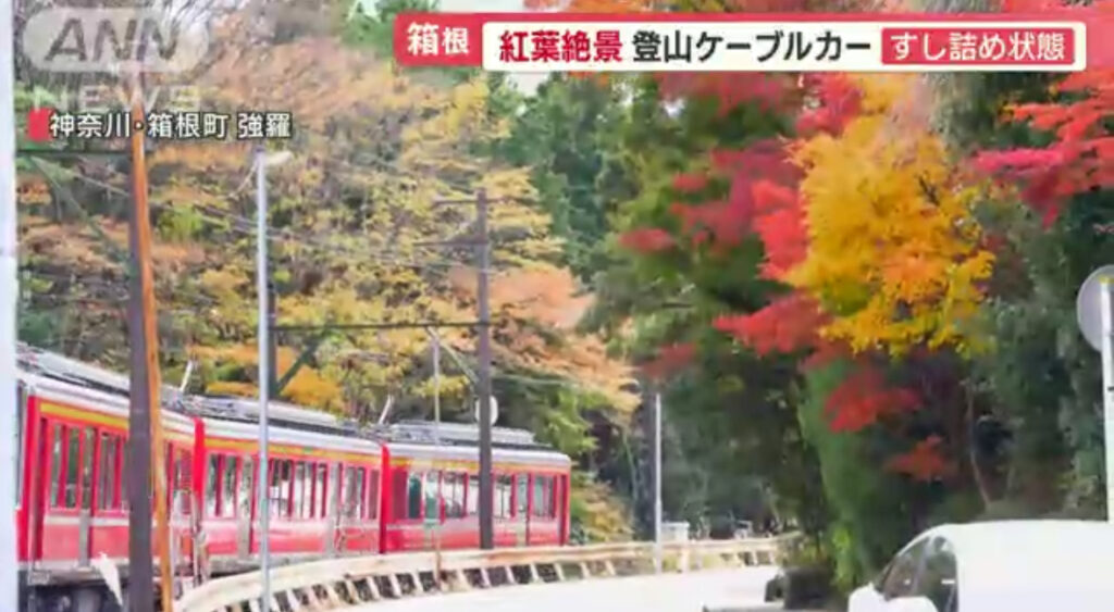 【箱根】紅葉に外国人殺到…登山ケーブルカーは“すし詰め” サンダル姿でタクシー40分待ち