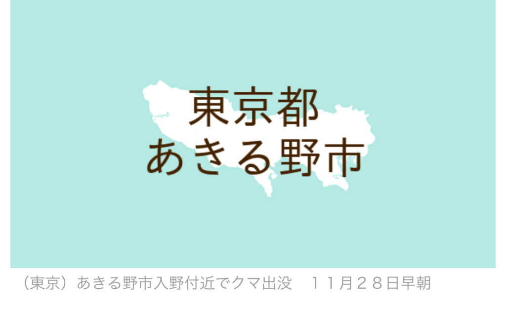 【東京】あきる野市入野付近でクマ出没 11月28日早朝