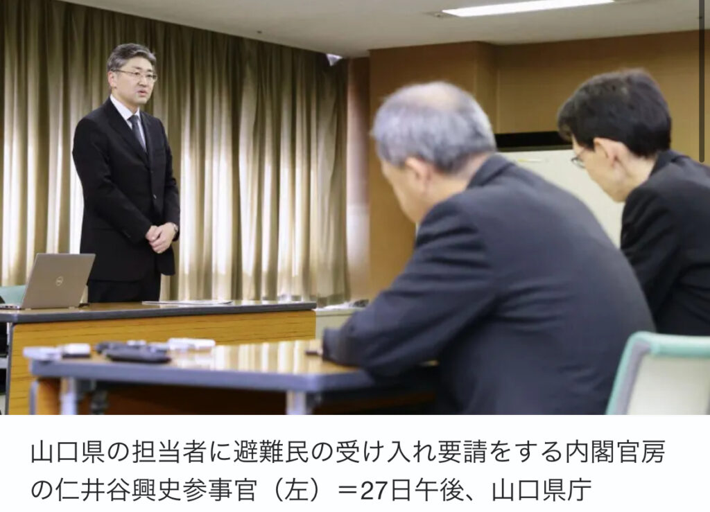 1: ぐれ ★ 2023/11/28(火) 22:20:57.59 ID:Ovin4zod9 >>2023/11/27 共同通信 内閣官房の仁井谷興史参事官は27日、山口県庁を訪れ、台湾有事を念頭に沖縄県の離島からの避難民を九州各県と分担して受け入れ、支援するよう県幹部に求めた。避難対象... -