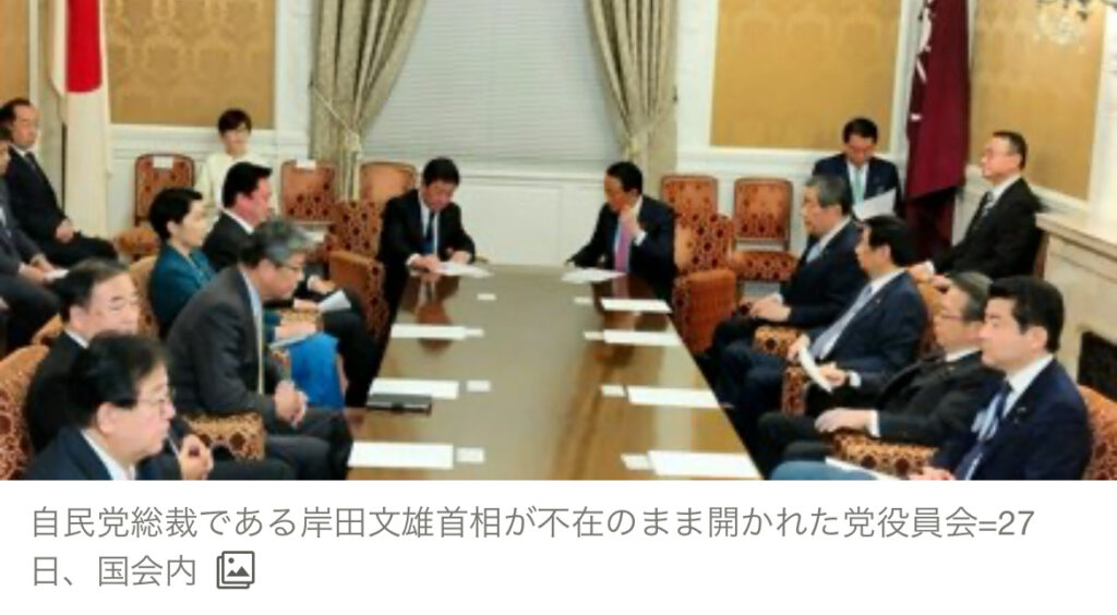 1: 蚤の市 ★ 2023/11/27(月) 22:51:53.96 ID:97ZPwyBI9 自民党は27日、本来は出席する党総裁の岸田文雄首相を欠いたまま役員会を開いた。「首相軽視」との見方が広がったが、参院予算委員会が長引き、首相が開催を求めたことが発覚。「首相軽視」は勘違... -