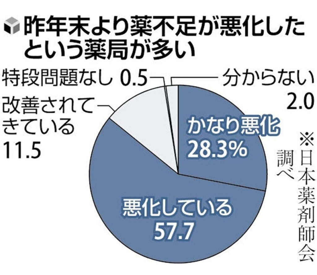 【薬不足】薬局の86%が昨年末より悪化…ジェネリック医薬品の22%入手しにくく