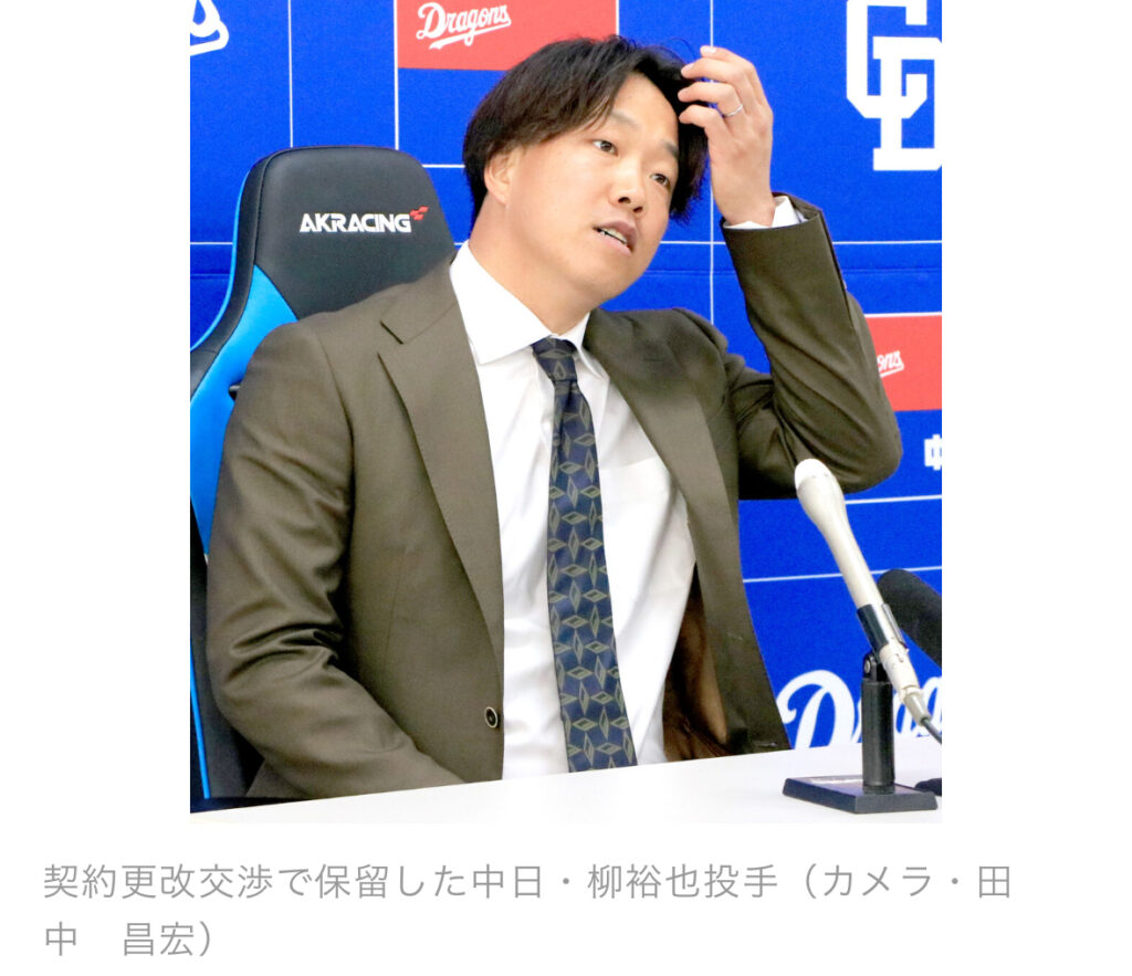 1: Ailuropoda melanoleuca ★ 2023/11/27(月) 11:52:20.50 ID:wDgXrcOm9 2023年11月27日 11時43分 中日の柳裕也投手が27日、ナゴヤ球場内で契約更改交渉に臨み、今季の1億800万円からアップ提示を受けたが保留した。「球団が僕という選手をどう思... -