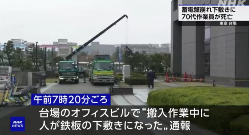 約1トンの蓄電盤の搬入作業中 作業員が下敷きになり死亡 東京 港区台場