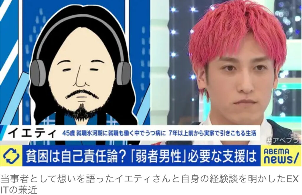 1: ばぐっち ★ 2023/11/26(日) 11:44:17.46 ID:??? TID:BUGTA 近年、いわゆる“弱者男性”が徐々に注目を集めている。貧困や孤独などに悩んでいても、「男性だから」と支援されにくいことが問題に。一方で、Xでは「男が優遇されてる社会で“弱者”って…自己責... -