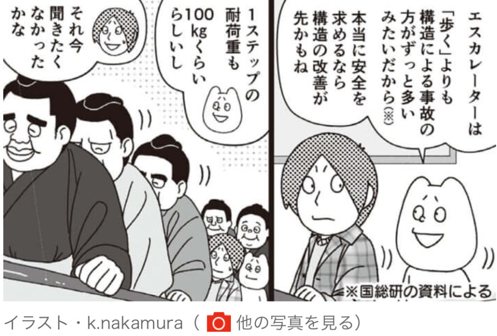 1: Ackerman ★ 2023/11/23(木) 08:48:54.12 ID:??? TID:NOcolor24 東京のエスカレーターで歩くときは右側、大阪では左側、では名古屋は? 正解は「止まる」らしい。この度、名古屋市でエスカレーターで歩くことを禁止する条例が制定された。罰則はないが... -