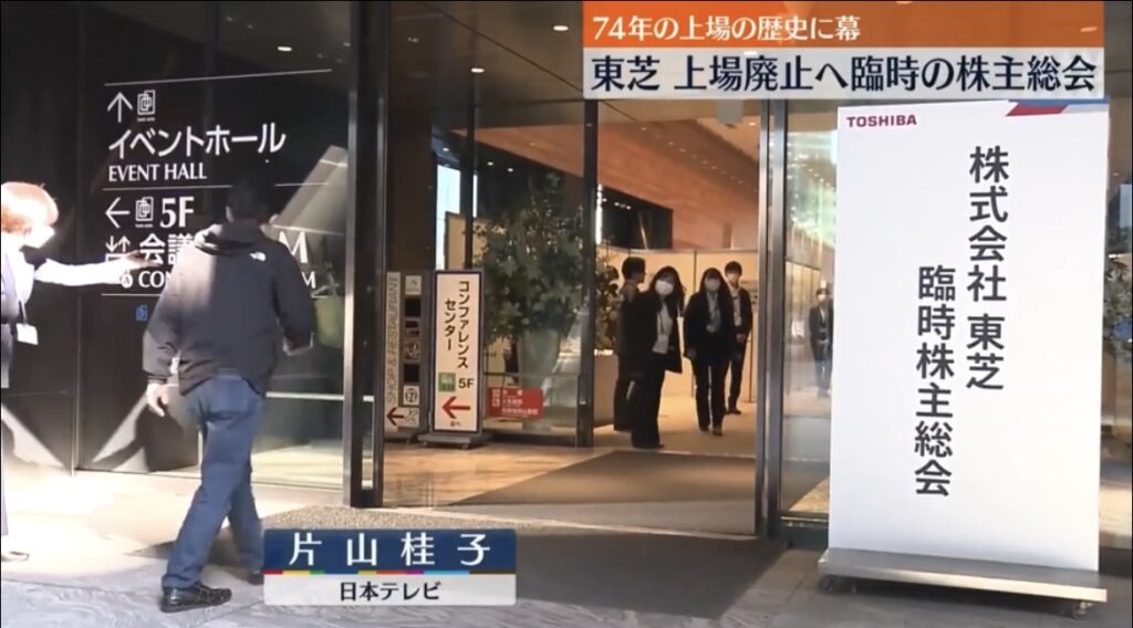 1: 朝一から閉店までφ ★ 2023/11/22(水) 14:15:42.59 ID:??? TID:syoubainin 日本テレビ放送網 2023年11月22日 13:41 東芝は、上場企業として最後となる臨時の株主総会を開きました。総会での決議を受けて、東芝は来月、74年の上場の歴史に幕を下ろすこと... -