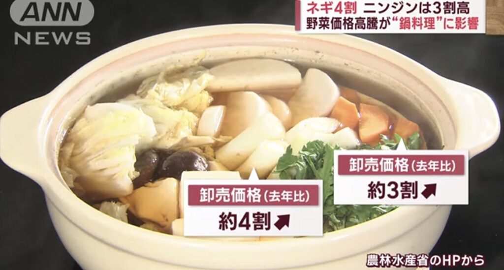 1: Ackerman ★ 2023/11/17(金) 07:19:16.79 ID:??? TID:NOcolor24 そんな季節に恋しくなるのが“鍋料理”なのですが、記録的猛暑の影響で肝心の野菜の価格が高騰しています。最新のネギの卸売価格は去年と比べて4割ほど高く、ニンジンも3割ほど高い状態で... -