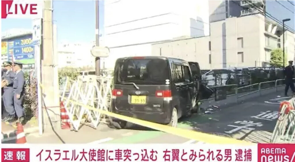 イスラエル大使館に車突っ込む 右翼とみられる男逮捕