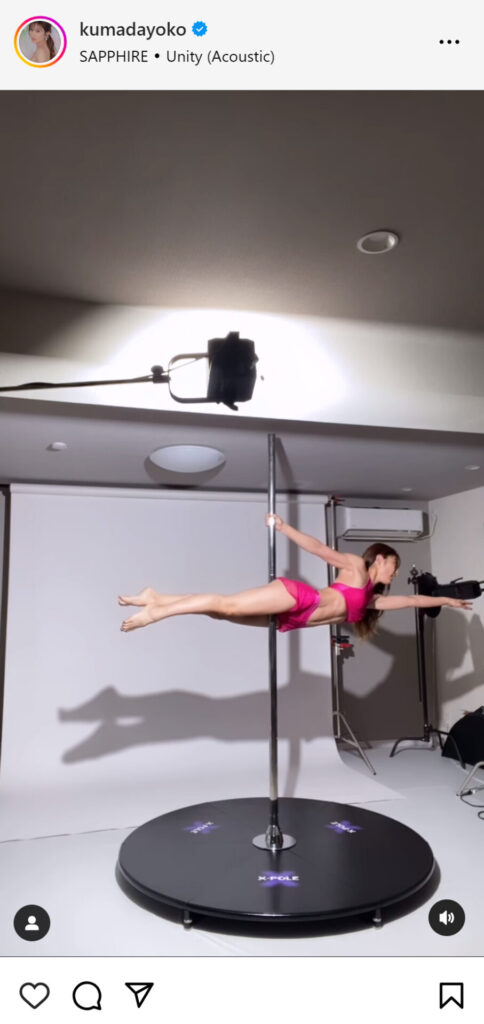 【芸能】熊田曜子「スピニングレッスン」ポールに足絡ませ可憐な動き披露「やりたいトリックがいっぱい」