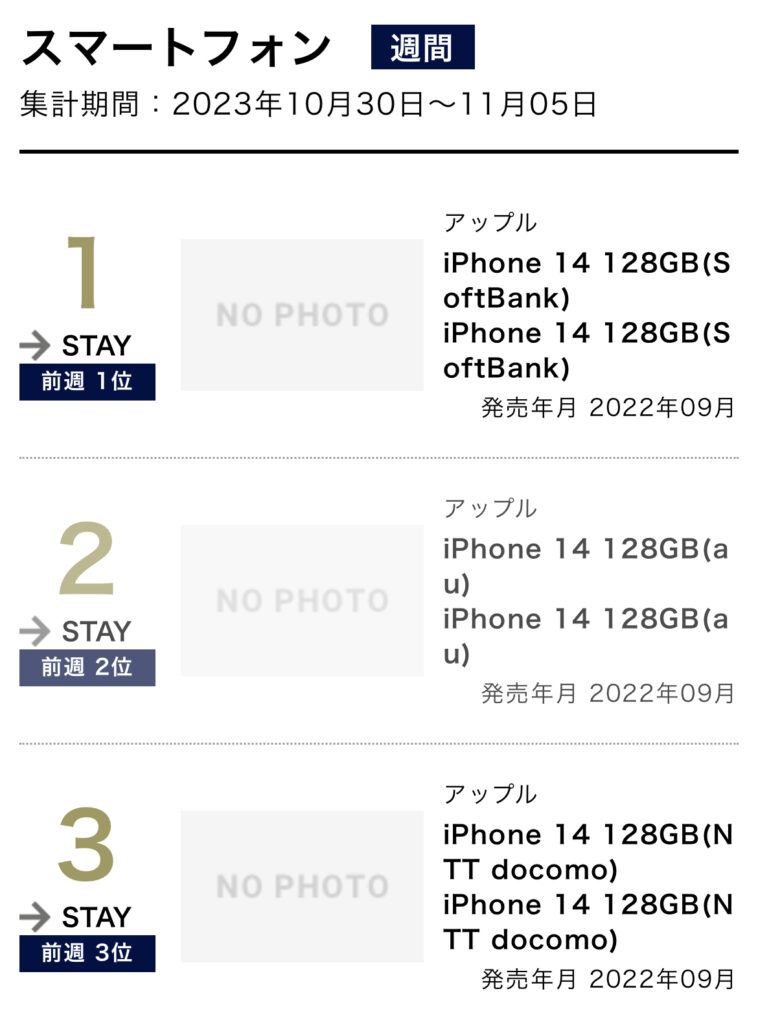 1: hage(茸) [CN] 2023/11/09(木) 14:45:32.90 ID:i+n/2xqM0 BE:422186189-PLT(12015) sssp://img.5ch.net/ico/folder1_03.gif 1. iPhone 14 128GB (SoftBank) 2. iPhone 14 128GB (au) 3. iPhone 14 128GB (NTT docomo) 4. iPhone 13 128GB (NTT docomo) ... -