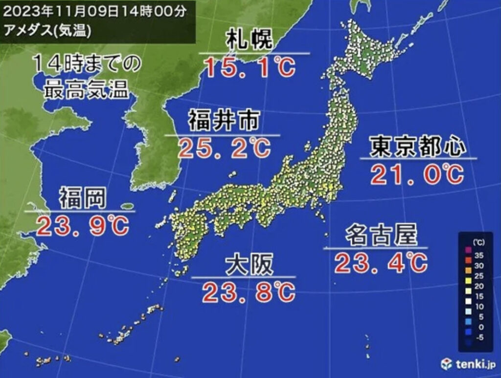 1: もん様(茸) [VN] 2023/11/09(木) 14:36:09.28 ID:CA3UrH1r0● BE:421685208-2BP(4000) sssp://img.5ch.net/ico/syobo2.gif 小春日和は きょうで一旦終了 あす夜からは寒気流入で一気に冬へ 気温の変化に注意 東京も12日(日)は13℃の予想で、12月上旬並... -