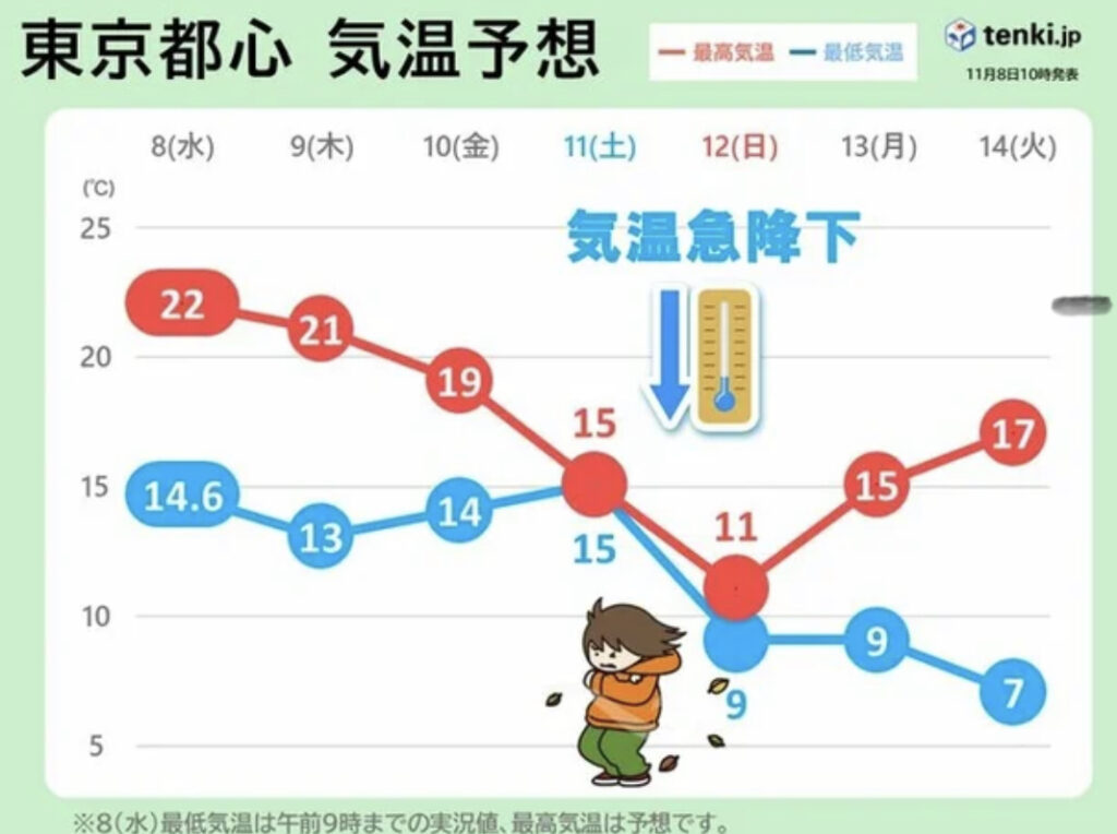 【冬支度を】記録的暑さから一転 今週末から一気に冷え込む 都心は今季初ひと桁の気温…