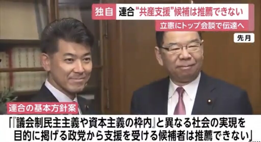 【政治】連合“共産党から支援受けた候補者は推薦できない”立憲に伝える方針 次の衆院選の野党協力巡り